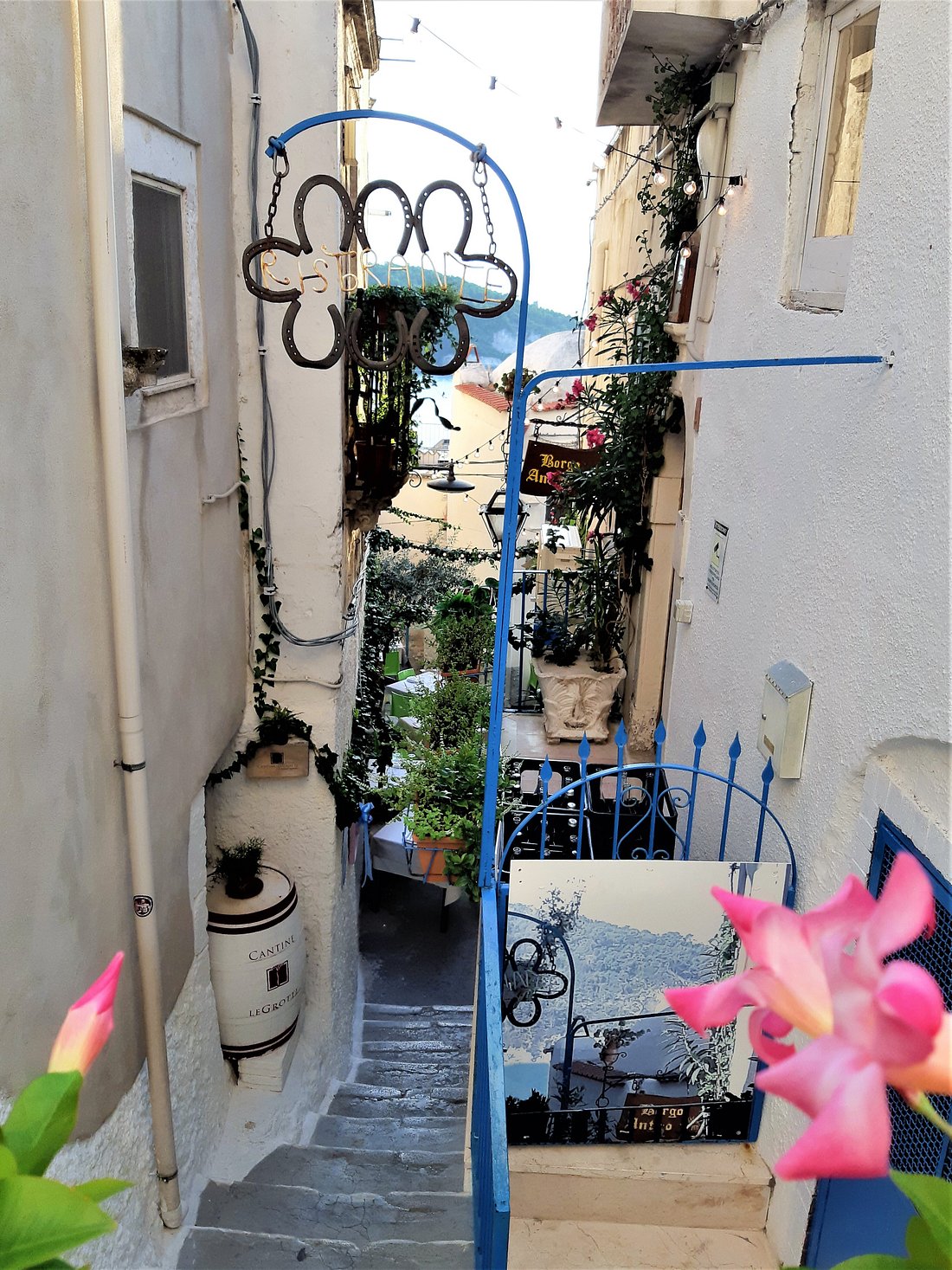 - Vicoli: Passeggiare per i vicoli del centro storico è un’esperienza unica. I vicoli sono lastricati in pietra e spesso portano a piccoli cortili nascosti o a punti panoramici che offrono vedute mozzafiato sul mare.