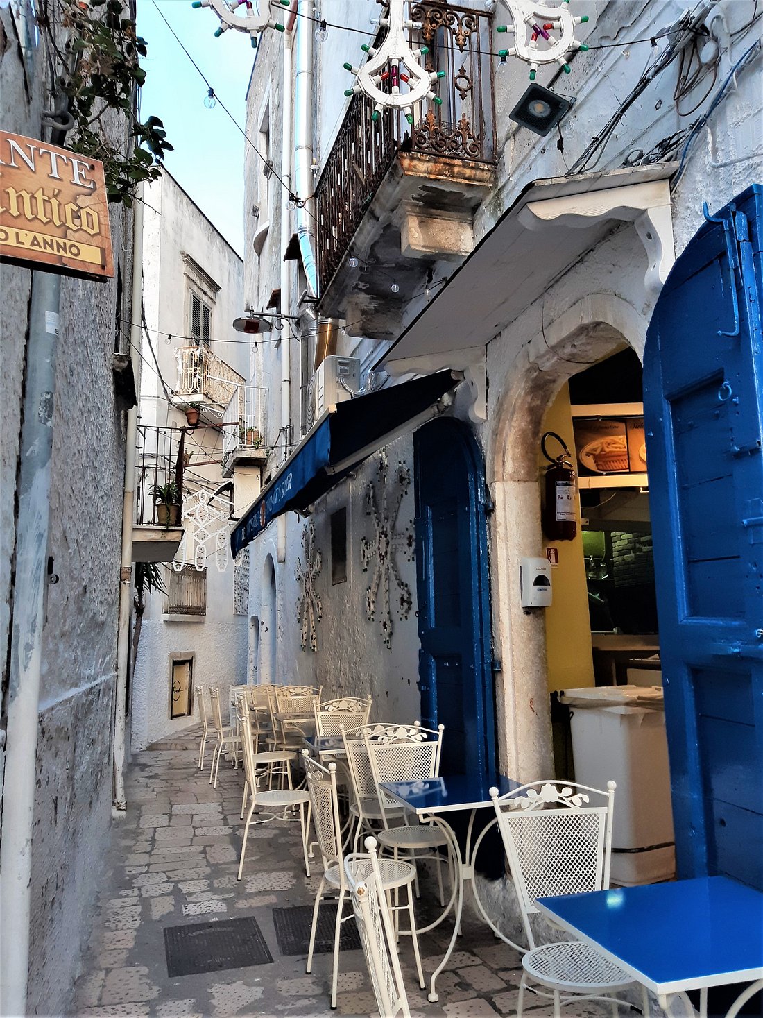 Il centro storico è ricco di ristoranti, trattorie e taverne dove è possibile assaporare la cucina locale. Piatti tipici come le orecchiette, il pesce fresco, i frutti di mare e i dolci pugliesi sono protagonisti nei menu. Molti di questi locali offrono anche terrazze con viste panoramiche sul mare.